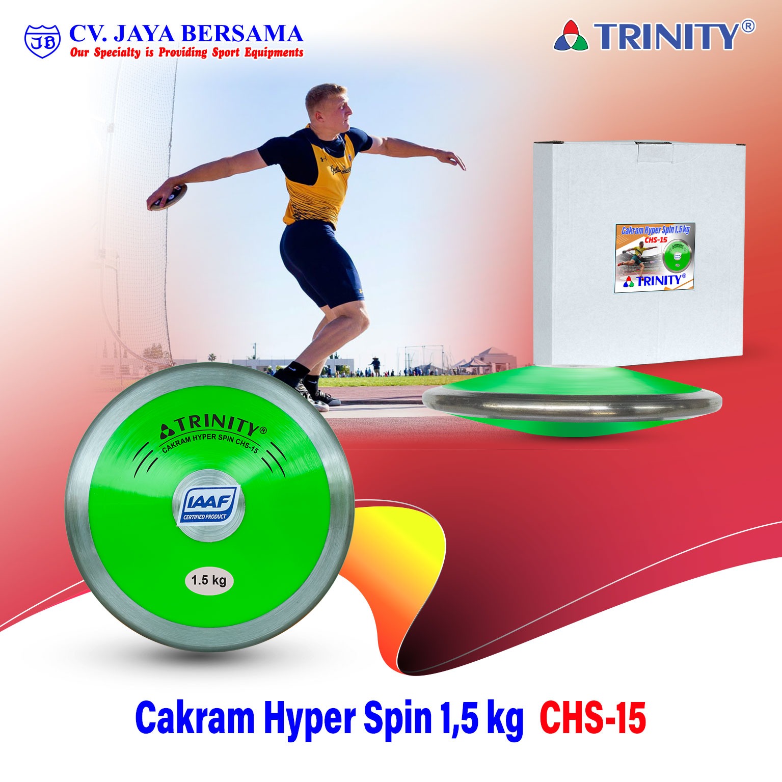 Spesifikasi Cakram Hyper Spin 1.5kg CHS-15 merek Trinity adalah sebagai berikut :