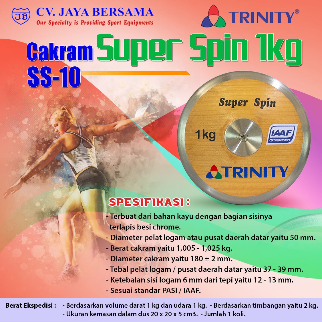 Spesifikasi Cakram Kayu Super Spin 1kg SS-10 merek Trinity adalah sebagai berikut :