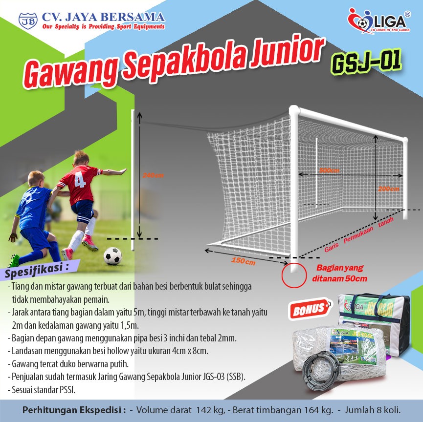 Spesifikasi Gawang Sepakbola Junior GSJ-01 merek Liga sebagai berikut :