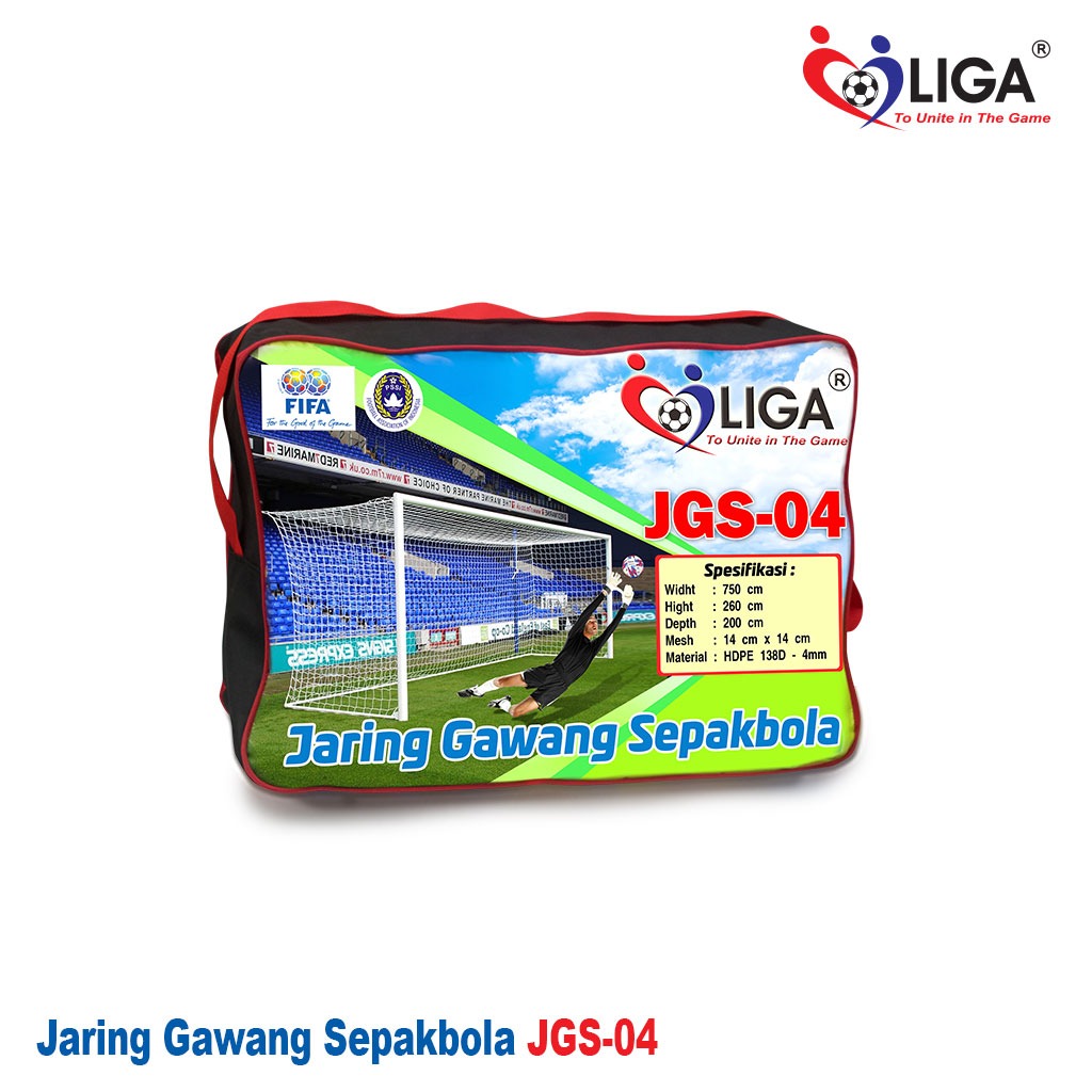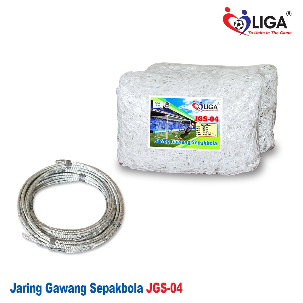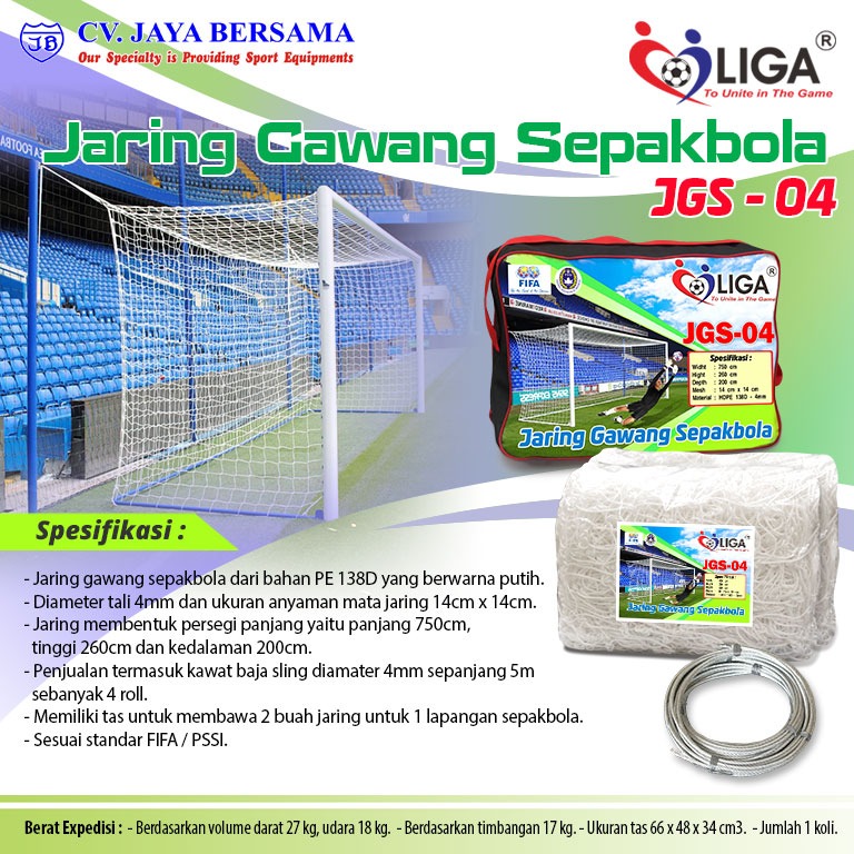 Spesifikasi Jaring Gawang Sepakbola 4mm JGS-04 (Soccer Goal Nets) merek Liga adalah sebagai berikut :