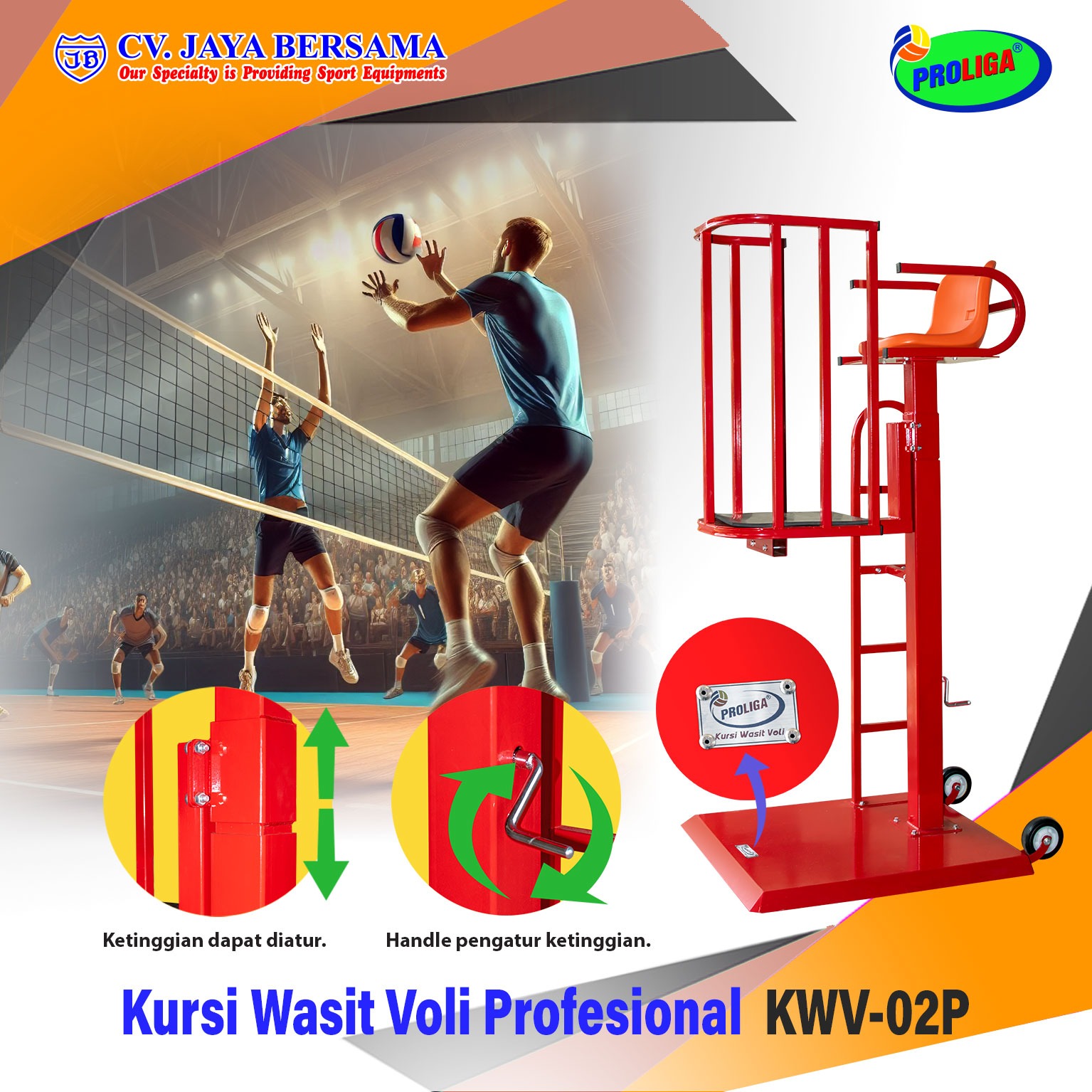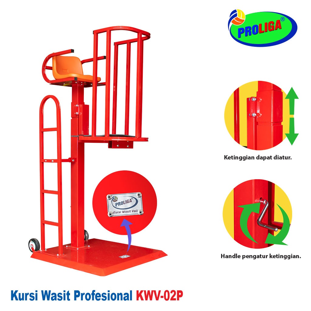 Spesifikasi Kursi Wasit Voli Profesional KWV-02P (Volleyball Referee Chair) merek PROLIGA sebagai berikut :