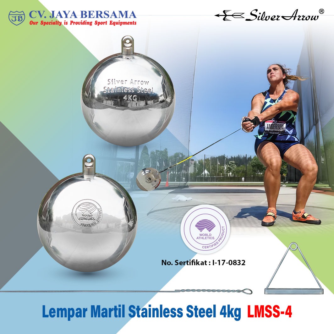 Spesifikasi Lempar Martil Stainless Steel 4kg LMSS-4 merek Silver Arrow sebagai berikut :
