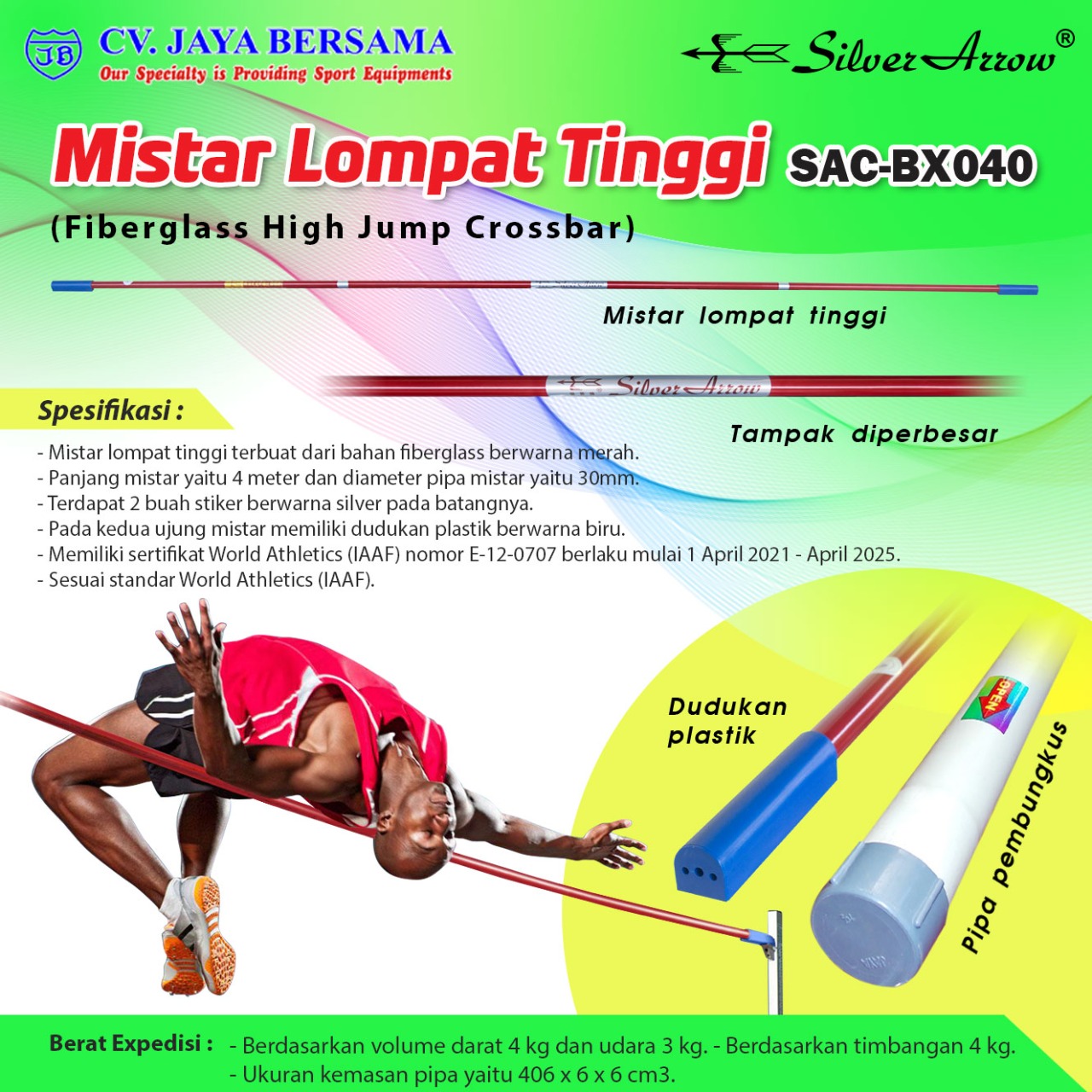 Spesifikasi Mistar Lompat Tinggi SAC-BX040 (Fiberglass High Jump Crossbar) merek Silver Arrow sebagai berikut :