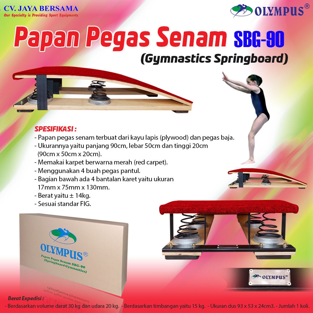 Spesifikasi Papan Pegas Senam SBG-90 (Springboard Gymnastics) merek Olympus sebagai berikut :