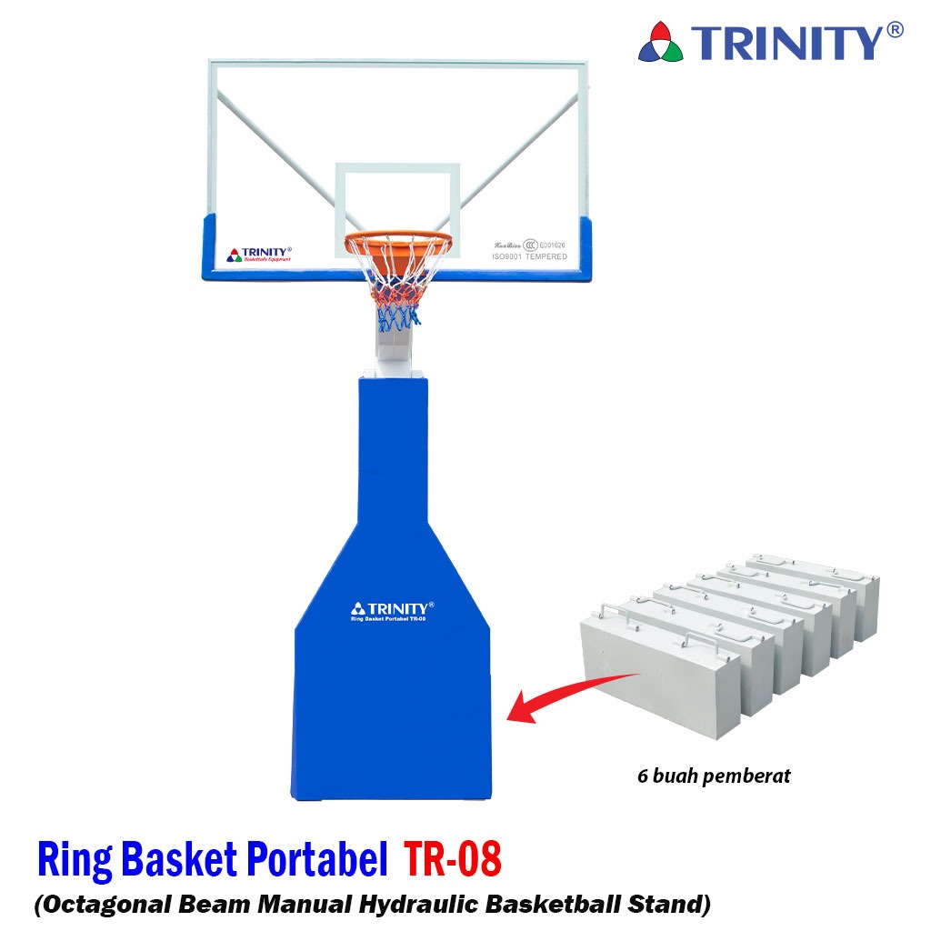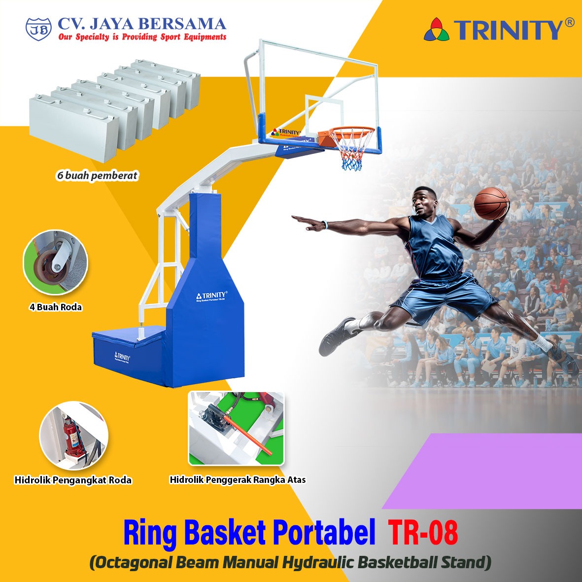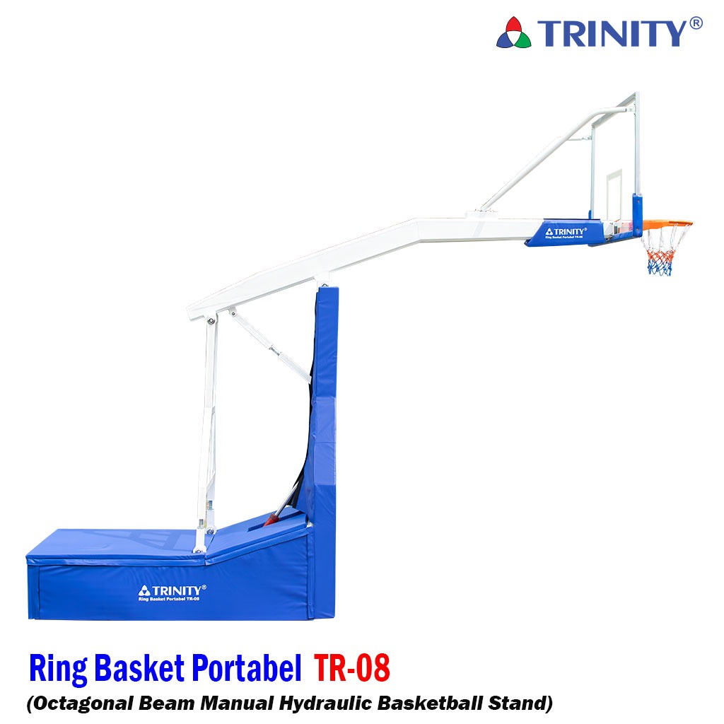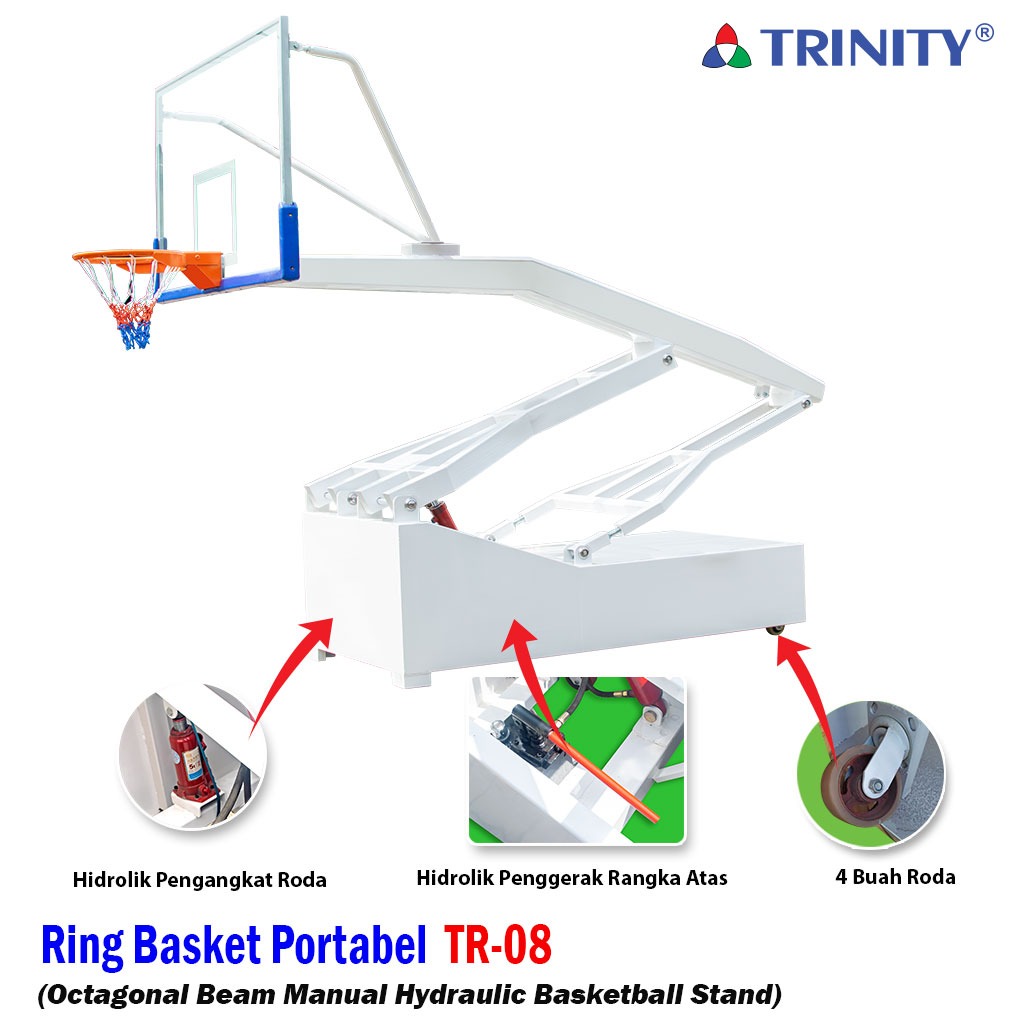 Spesifikasi Ring Basket Portabel TR-08 (Octagonal Beam Manual Hydraulic Basketball Stand) merek Trinity sebagai berikut :
