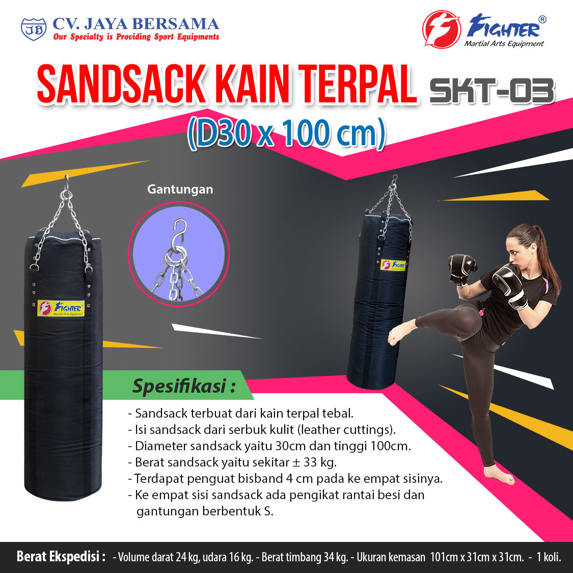 Spesifikasi Sandsack Kain Terpal SKT-03 (D30 x 100cm) merek Fighter sebagai berikut :